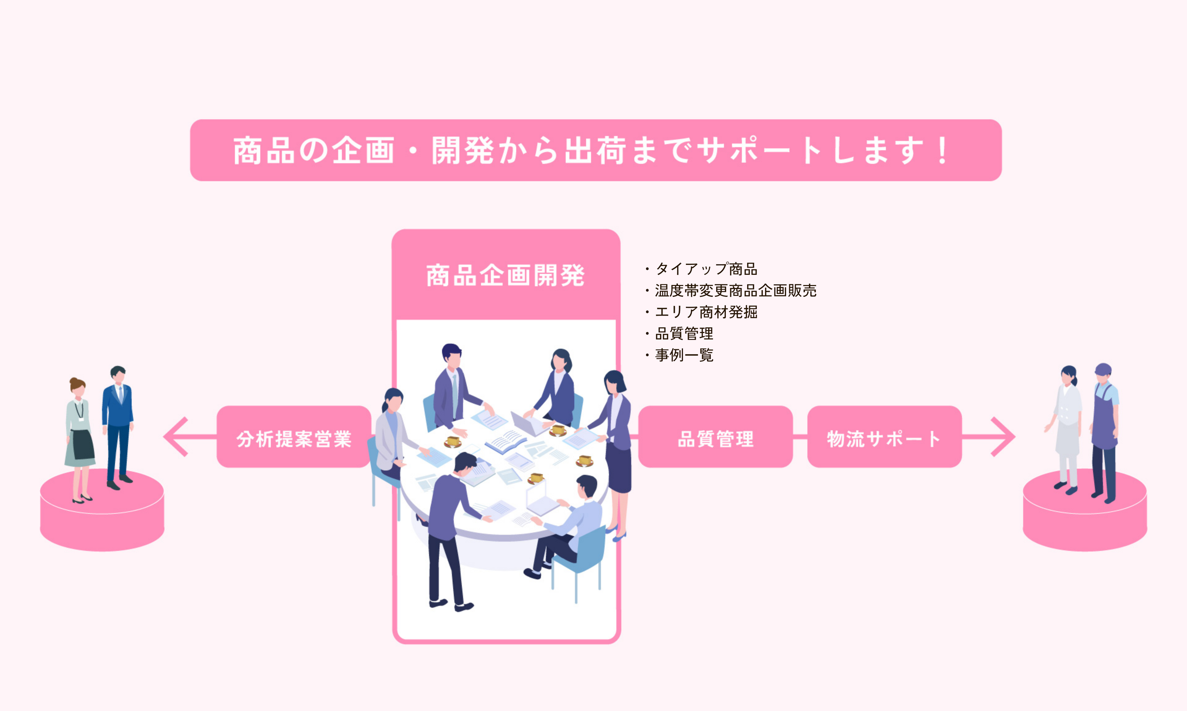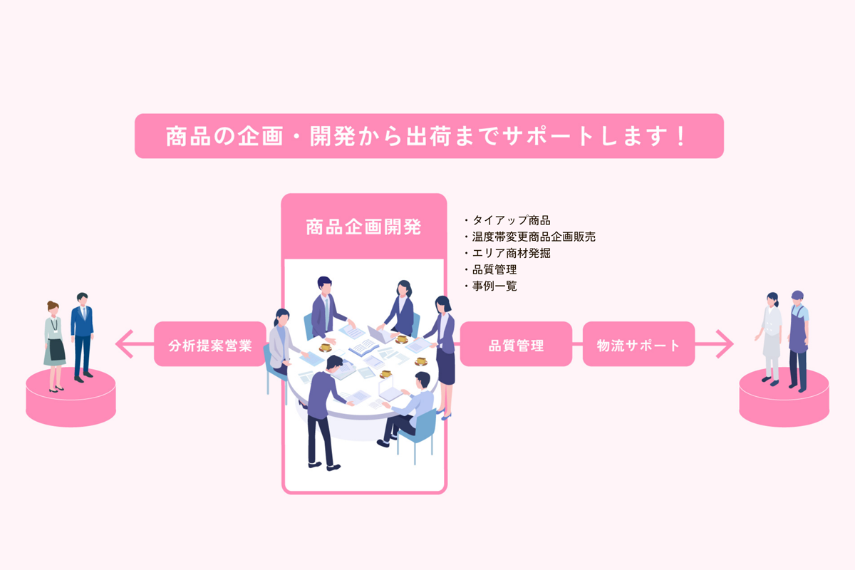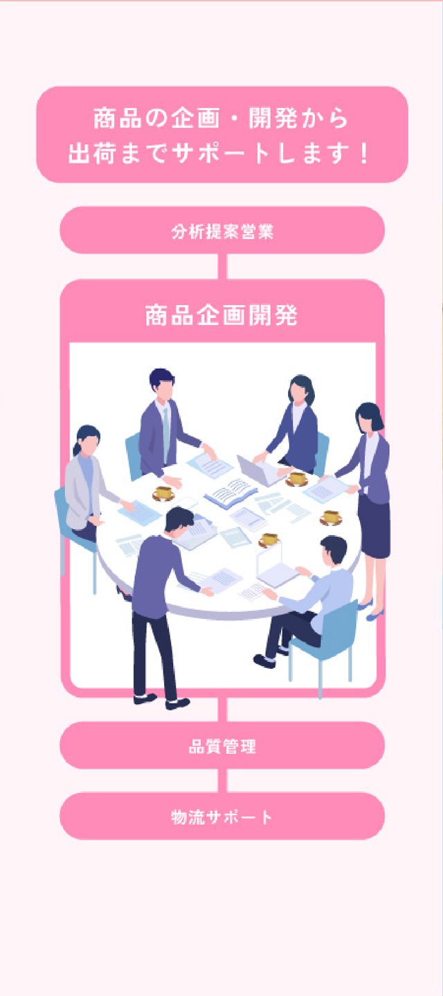 • 様々な商品の企画開発から提案に加えて、更には品質管理から物流コーディネートまで、トータルサポートいたします。